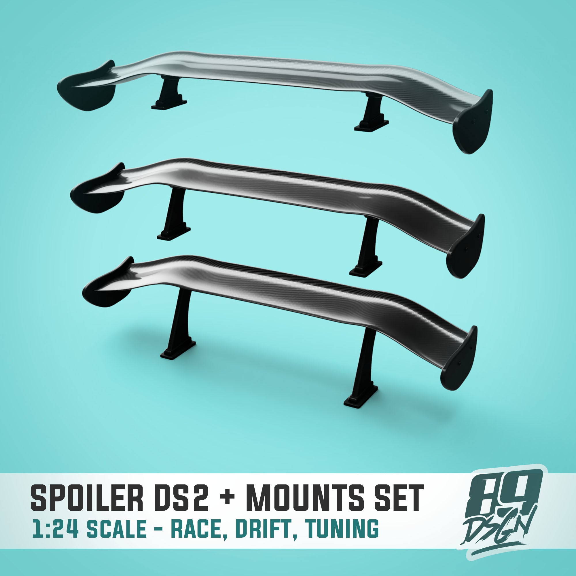 Add an aggressive motorsport look to your build with the DS2 Fully Adjustable Spoiler Kit by 89DSGN. Designed for 1/24 scale model cars, this spoiler features a clean, modern profile and adjustable mounting options that let you fine-tune the stance and attitude of your build.